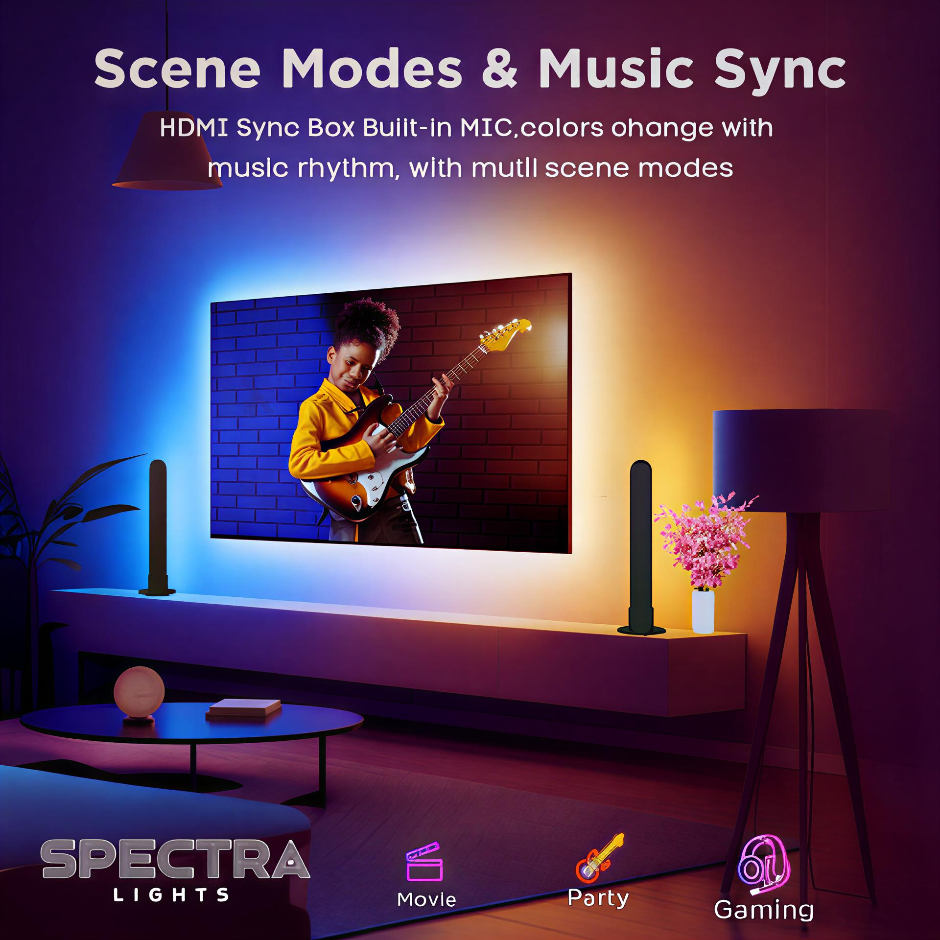 • SUITABLE FOR 32-85 INCH TV:2.4M,  2.8 M and 3.8 M TV backlights suitable for 32-85 inch TVs, along with two LED Bars connected via flexible cable.